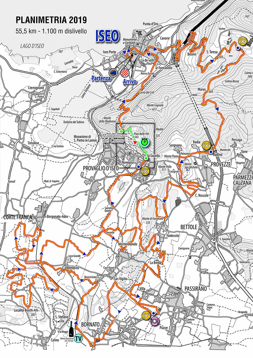 Tutto confermato per quanto riguarda partenza e arrivo, con viale Repubblica e il cuore di Iseo centro nevralgico dell’evento, cambiamenti importanti riguardano, invece, il tracciato di gara. Dopo il primo riuscito esperimento dello scorso anno, il percorso diventa ancora più lungo: 55,5 km e 1.100 metri di dislivello. Anticipata però l’ora di partenza alle 9,45.